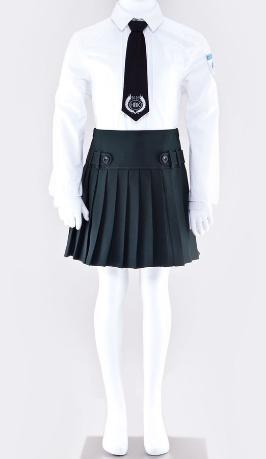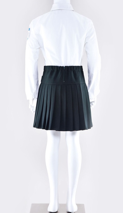 Классическая и очень симпатичная юбка для девочек школьного возраста. Верх юбки оформлен неширокой кокеткой, украшенной по бокам декоративными патами на пуговицах, и с кокетливым плиссерованным низом. Для большего удобства сзади по центру на кокетке расположена функциональная молния, а также вставлена изнутри регулируемая резинка.