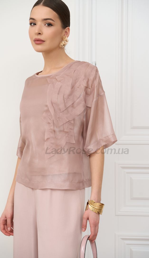 Блузон прозорий з топом пудровий