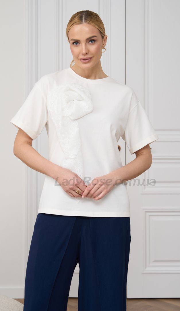 Футболка жіноча молочна з прикрасою