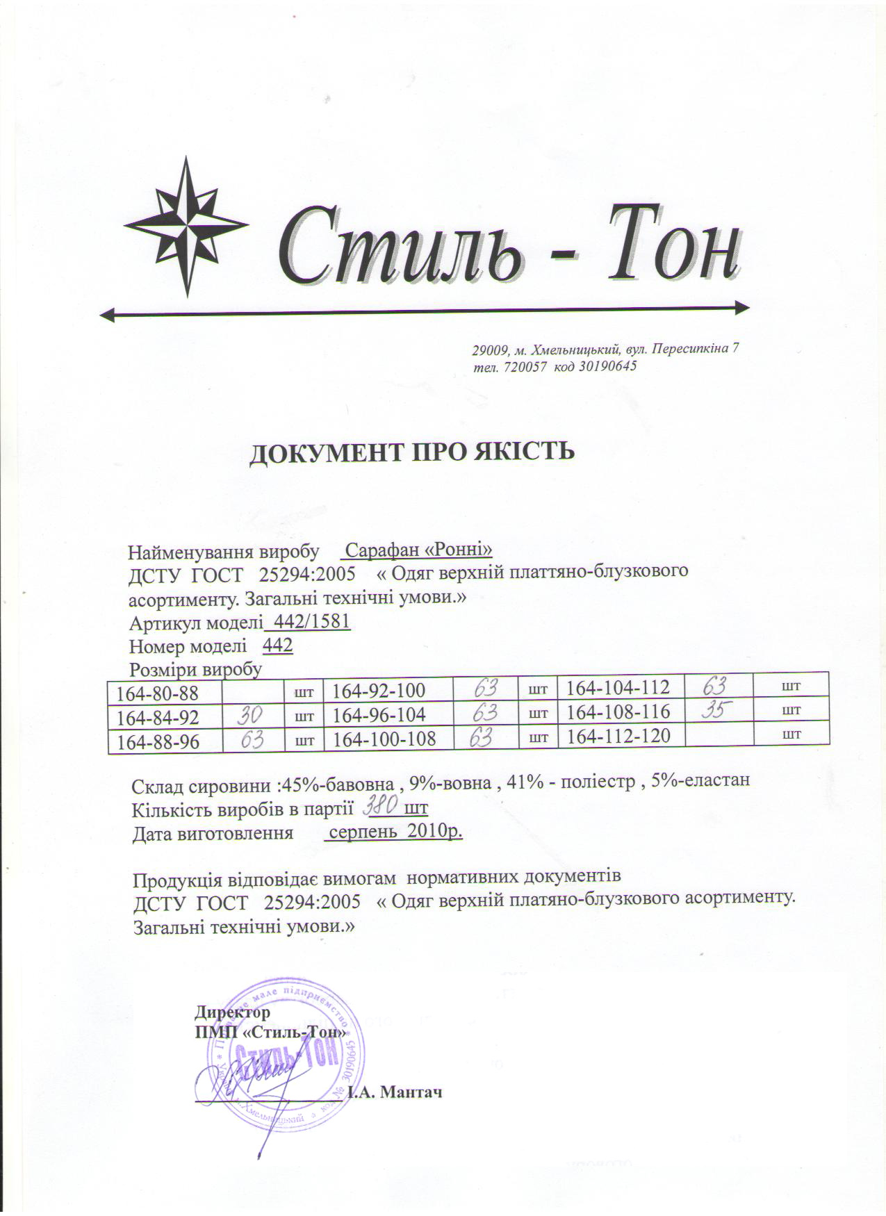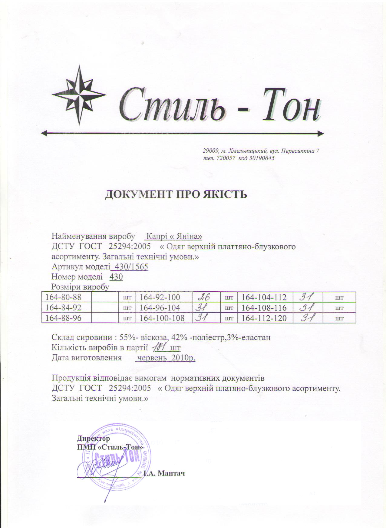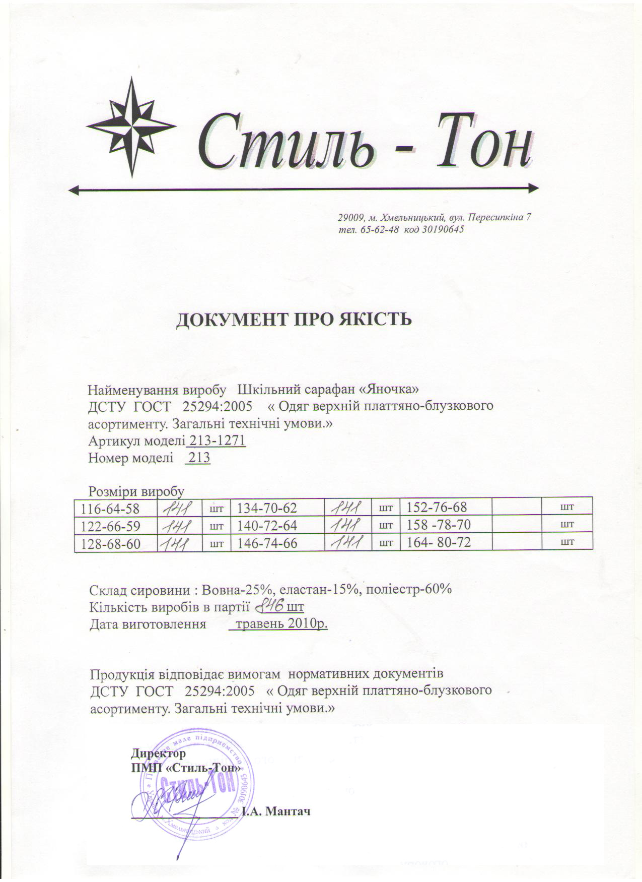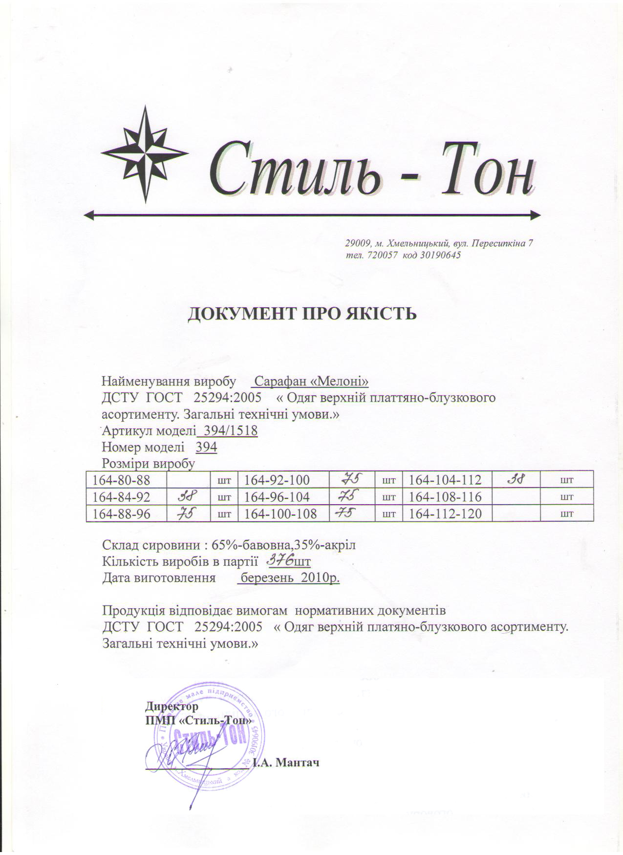 Документи про якість