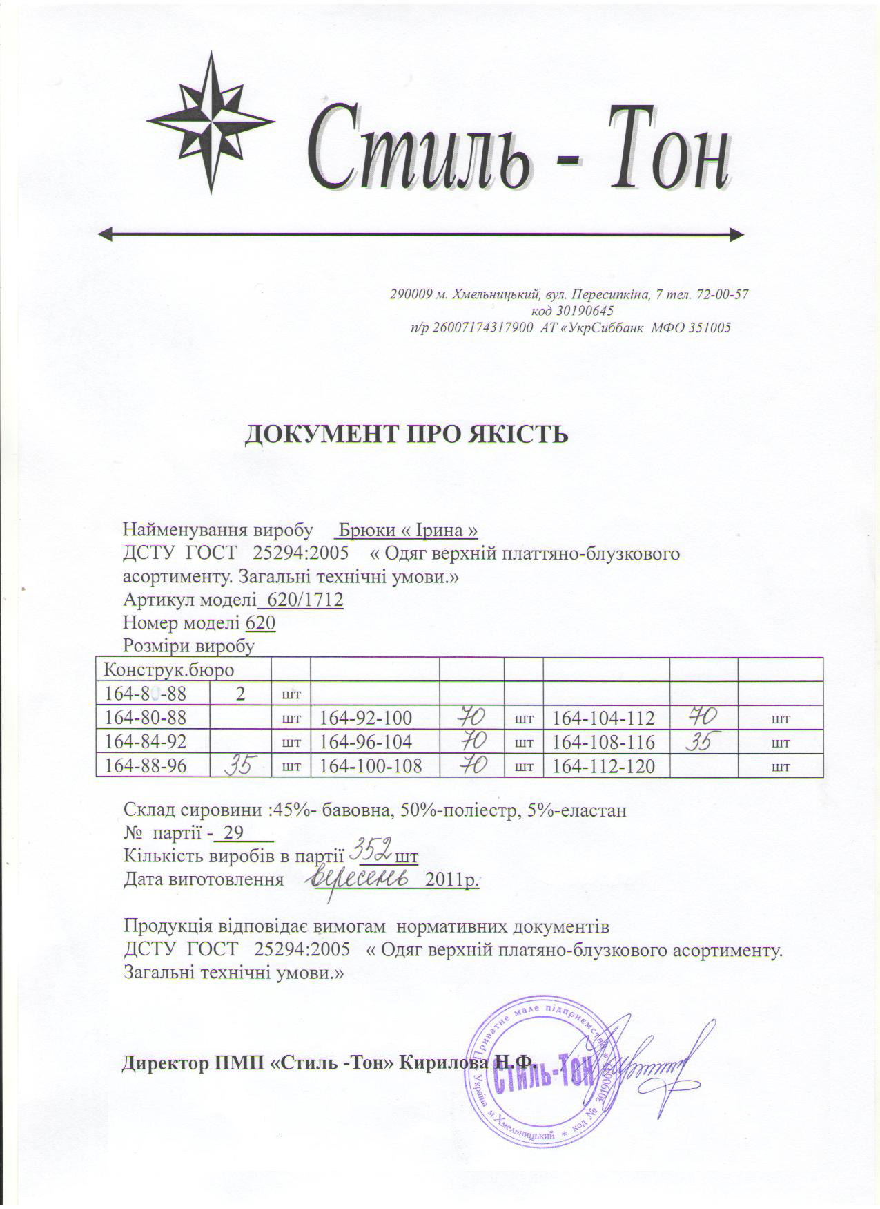 - Брюки Ірина